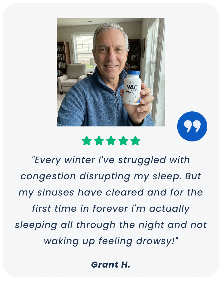 NAC is safe for long-term use and can be taken daily to help keep your system clear and functioning at its best. Many people also use it seasonally or as needed - especially during winter or whenever they feel more congested.